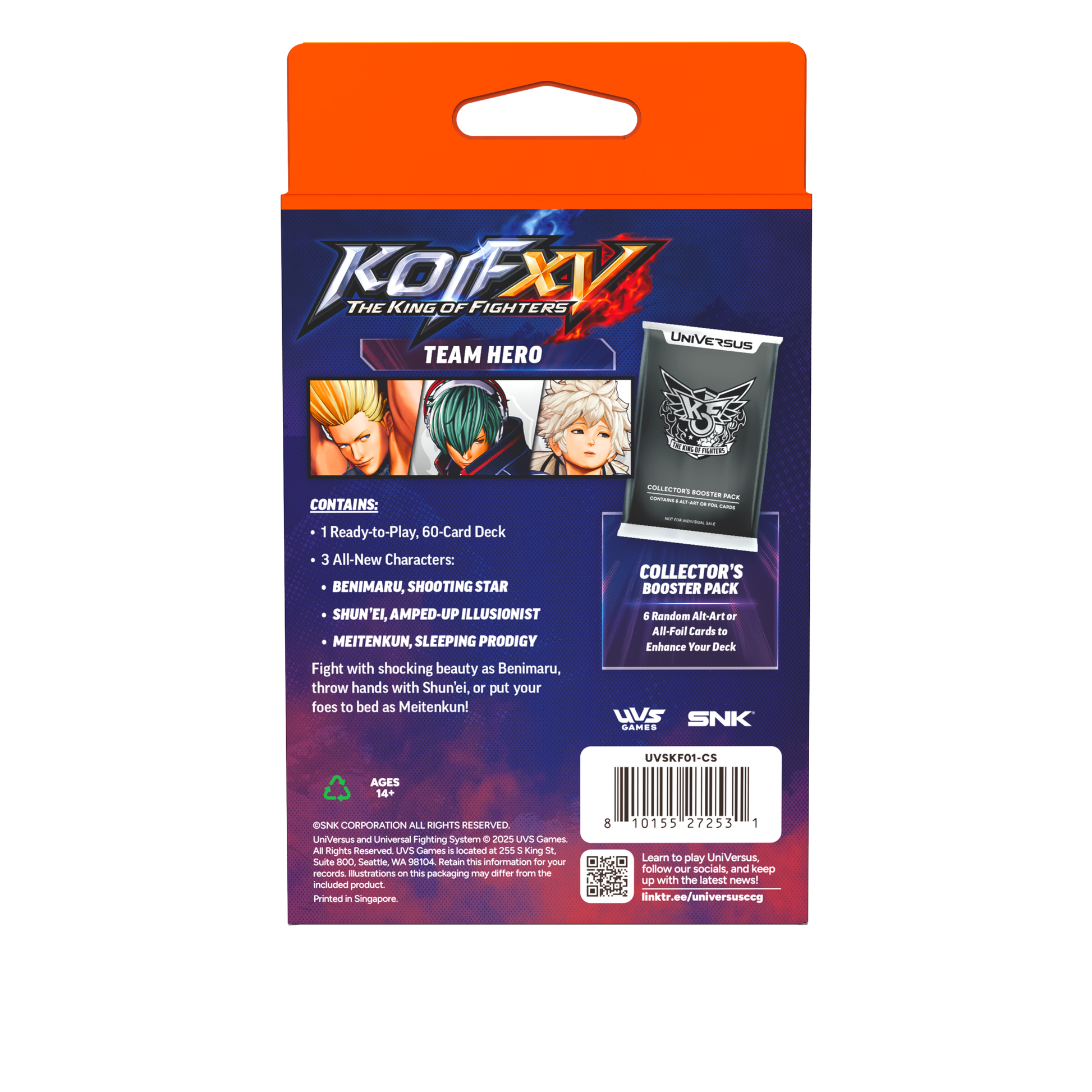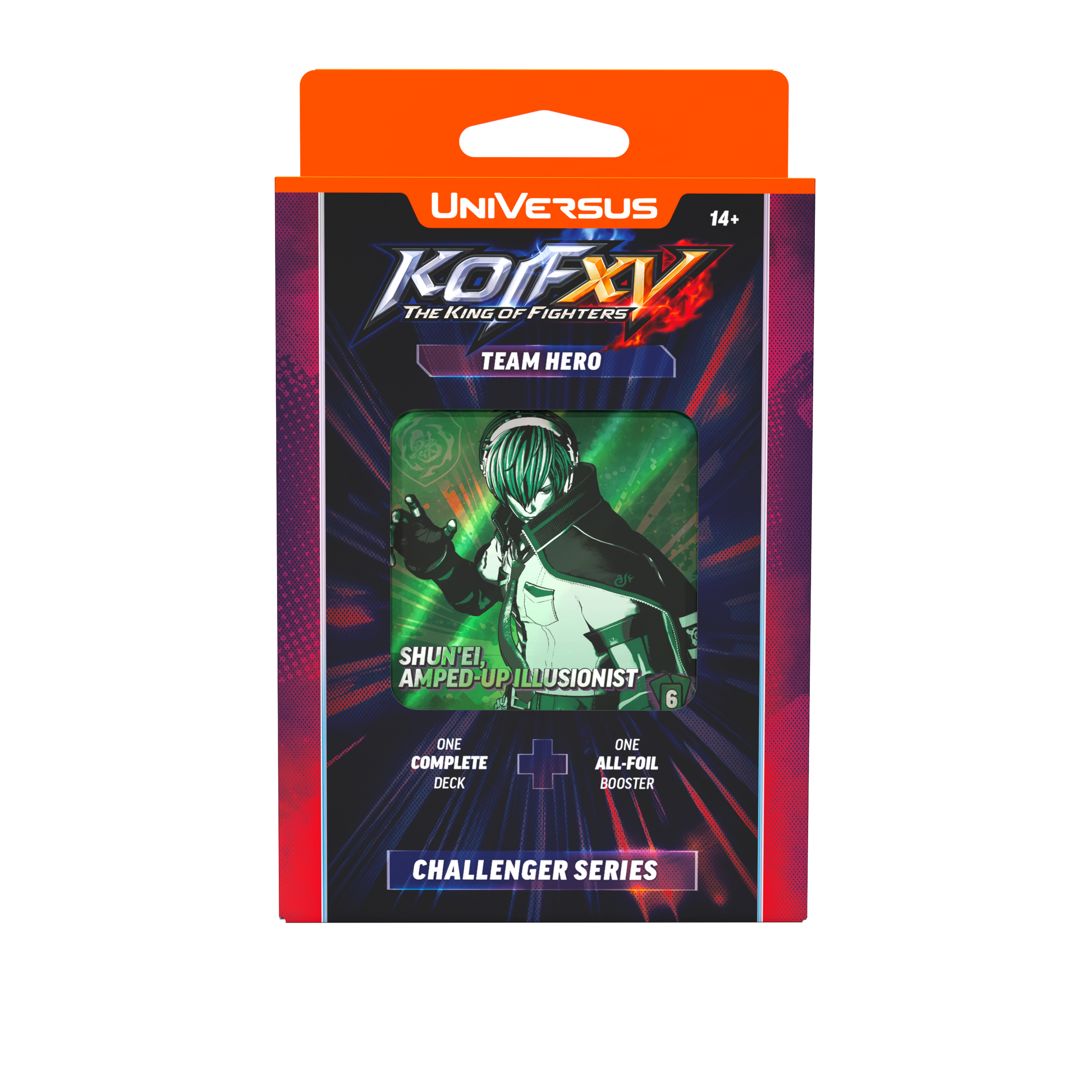 THE KING OF FIGHTERS XV arrives with Challenger Series decks built around the series’ signature team-based combat. Drawing inspiration from KOF’s classic 3-on-3 format, this release introduces a new way to play UniVersus while staying true to the fast pace and high-pressure decisions fans expect.